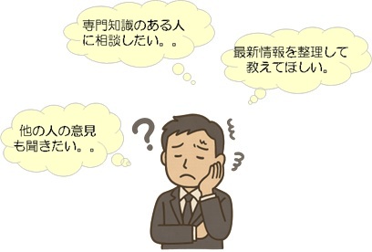 | ディスカッションを通し、他社の課題、考え方、取り組みを知ることで自社の課題解決につながります。 | 事業運営、事業拡大をしていく上で必要となる情報を解説付きで得られ、質問もできるため理解が深まります。 | 様々な難しい課題、新制度などへの対応を専門家にメールやジョイントミーティングで相談して解決します。 |